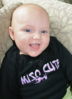 She's also working on sitting. She does great propped up, but if you put her on the bed and let go, she's tips right over and then has a surprised look on her face. I can do it over and over and laugh every time. Her tolerance seems to run out after 4 or 5 tips though.
